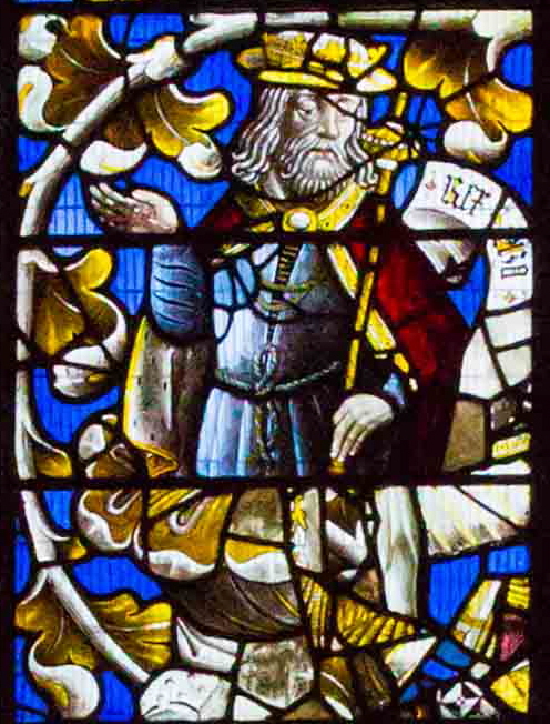 was the third ruler of the Kingdom of Judah and the fifth king of the House of David; he reigned from the end of the tenth century BC to the early years of the ninth. Like the other kings depicted in the window, he is shown holding a sceptre.