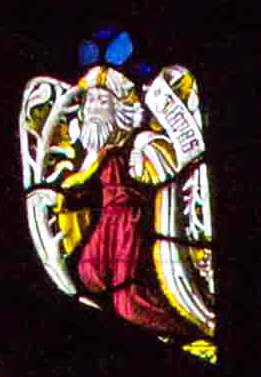 One of four prophets depicted at the top of the window, Isaiah clearly merits a place because he provided artists with the concept of the Tree of Jesse: “There shall come forth a shoot from the stump of Jesse, and a branch shall grow out of his roots”.